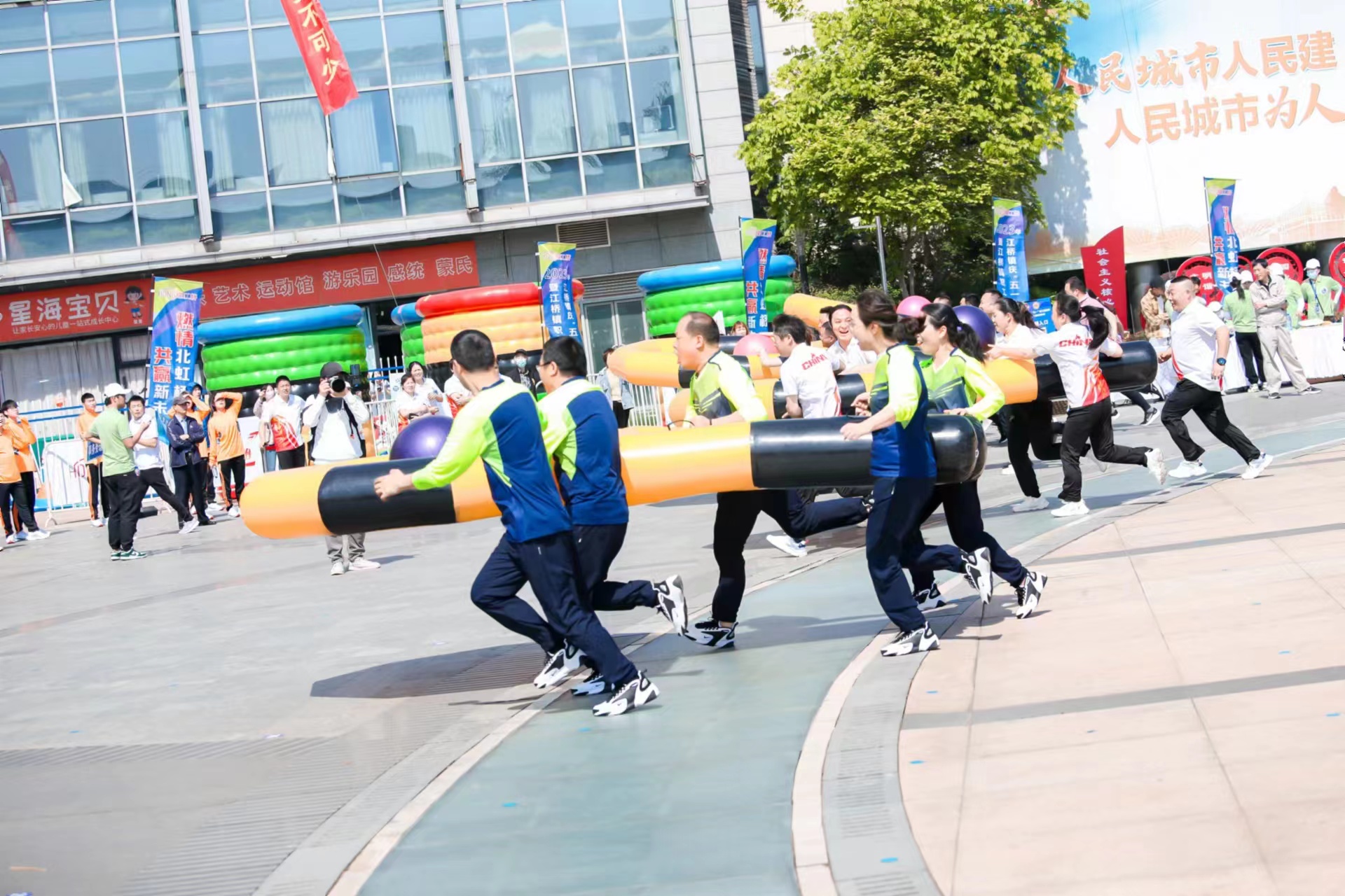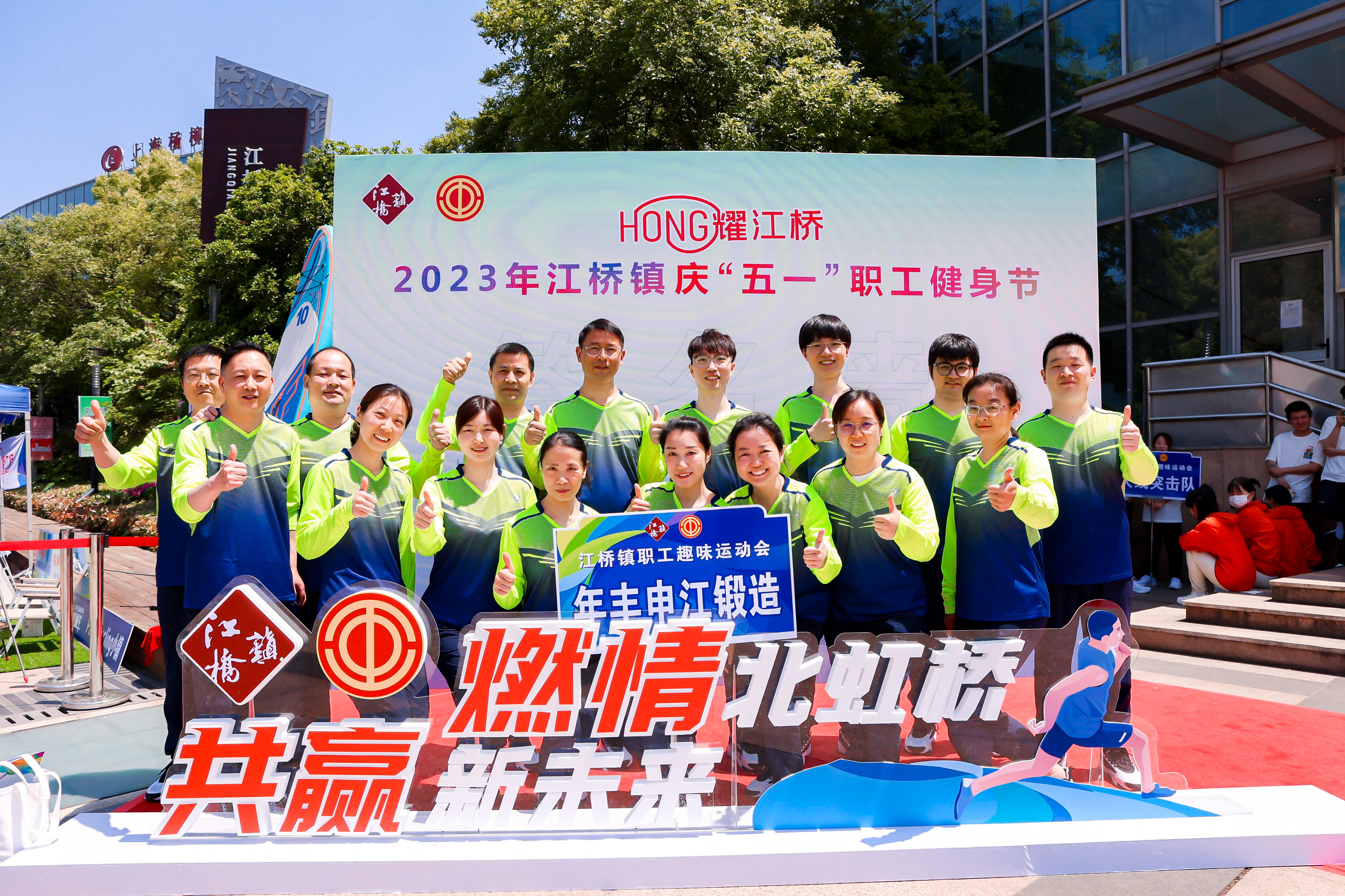 为促进企业职工的身体健康和生活品质,提高职工的身体素质和工作效率,增强团队凝聚力和员工间的友谊,4月26日我司组织16名员工参加了由江桥镇总工会主办的“燃情北虹桥 共赢新未来”江桥镇庆“五一”职工健身节暨江桥镇职工趣味运动会。