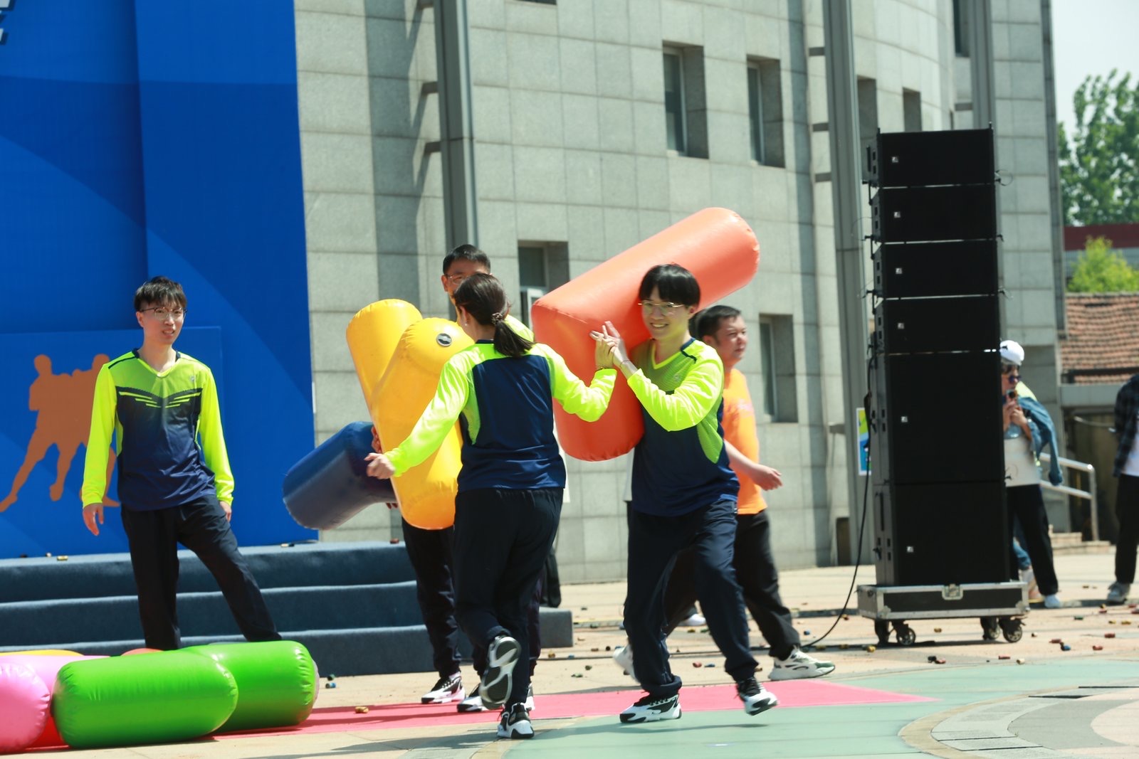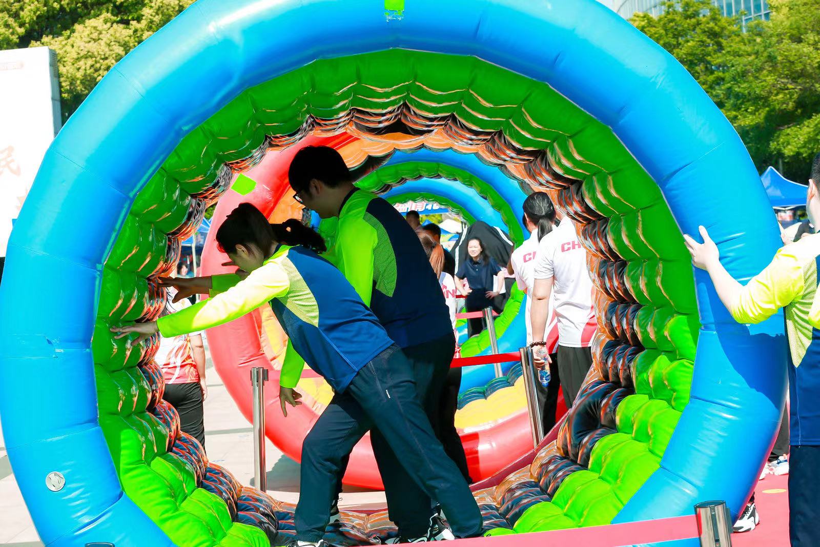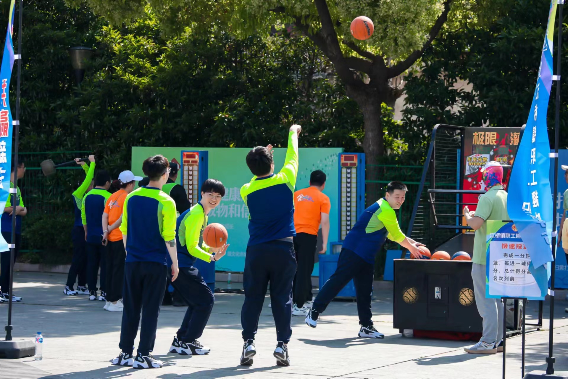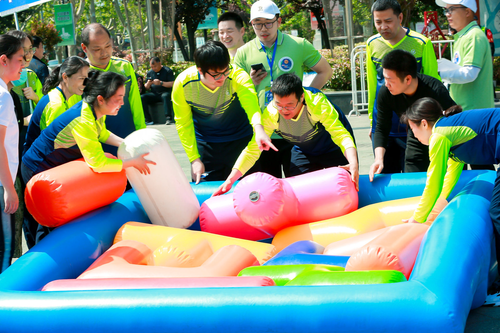 团体项目“俄罗斯方块”展现了选手们的速度与智慧;“十拿九稳”考验着选手的团结与合作;“动感五环”则比拼着大家的平衡度与协作性。个人项目比拼也空前激烈,“飞盘射门”、“极速投篮”、“一锤定音”、“迷你高尔夫”项目看似简单,要取得好成绩却不容易。场上笑声不断,大家的热情比当空的太阳还强烈。